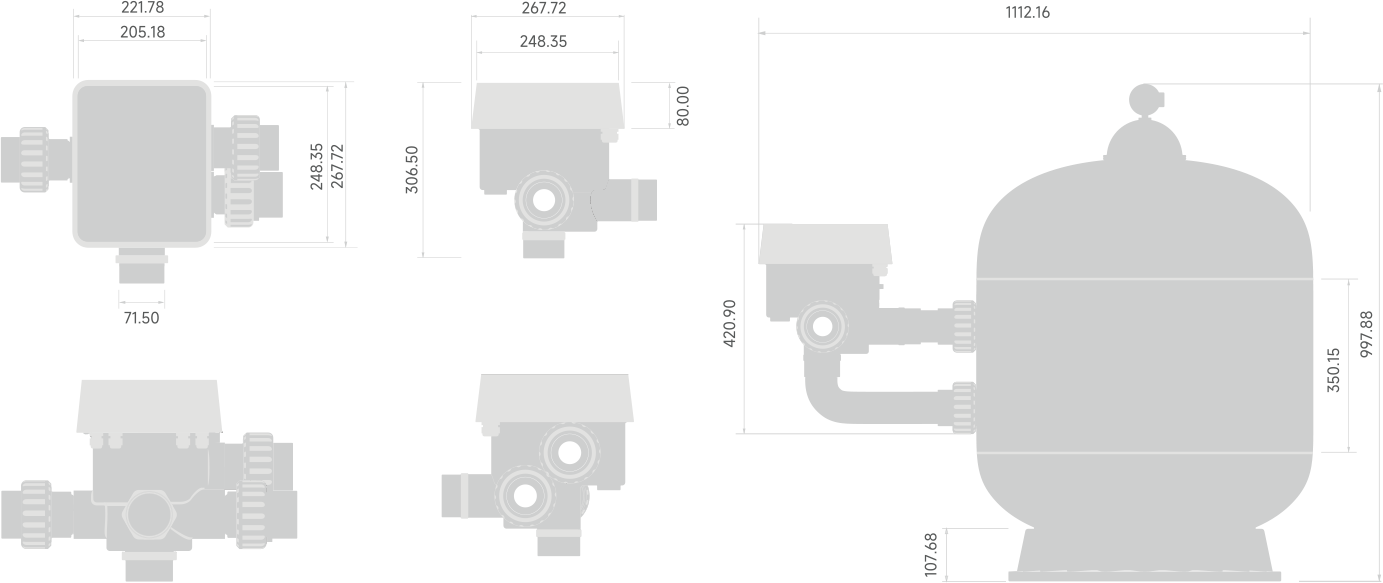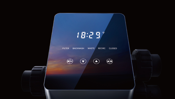 智能砂缸iWash融入前所未有的视觉和交互设计,在自动砂缸头解决方案领域开创独特的全面屏体验。iWash集合了过滤(FILTER)、自动冲洗(BACKWASH)、排空(WASTE)、循环(RECIRC)、关闭 (CLOSED)5大模式。