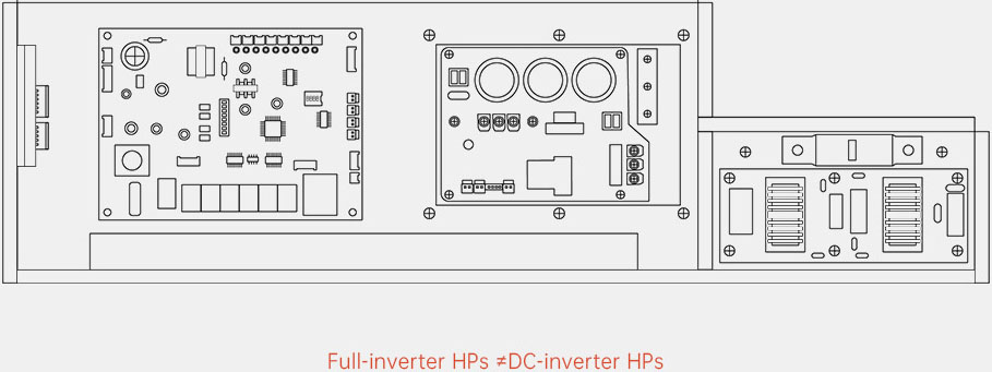 在游泳季开始时,Full-inverter全直流变频泳池热泵以100%的运行速率先完成池水初加热后,以平均50%的耗能运行,维持设定的泳池水温,与定频热泵相比,其运行成本节省一半。